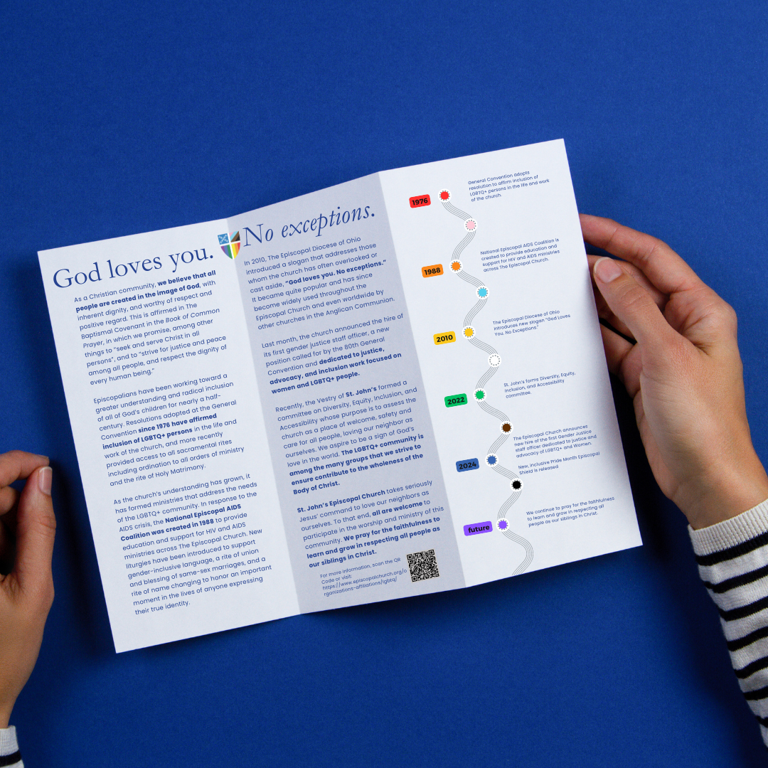 Remaining in line with The Episcopal Church’s style guide this bruchure worked to connect the materials to the wider church’s open and affirming messaging.